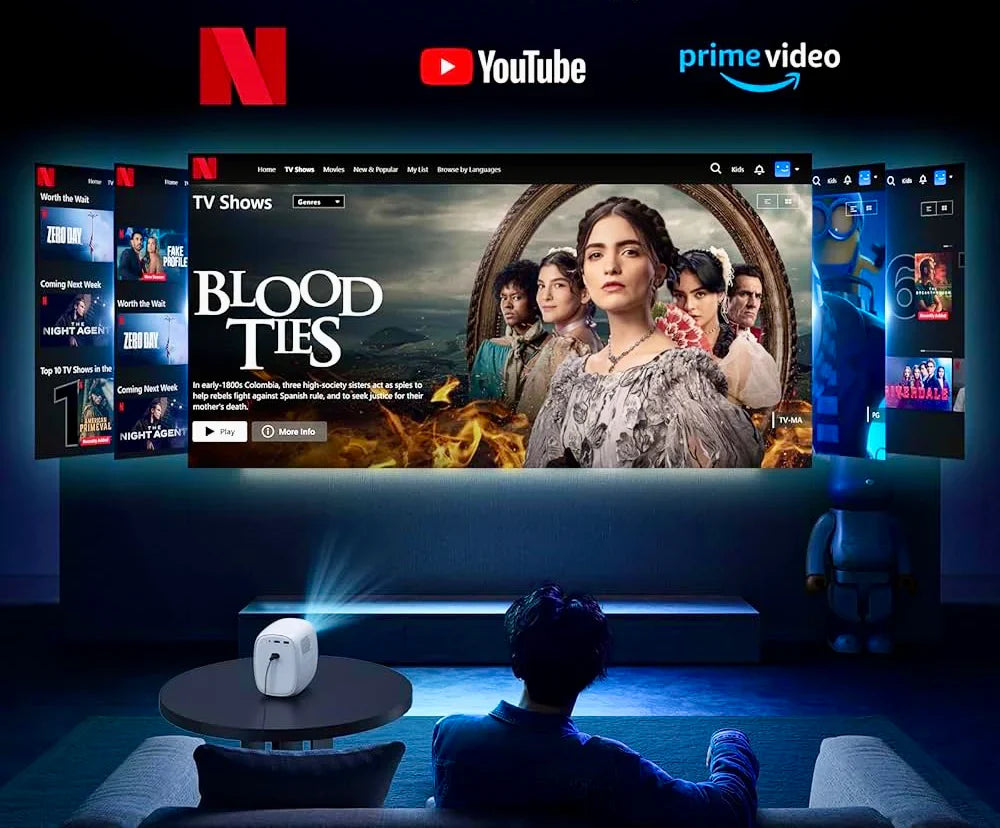 El diseño ligero y portátil del Proyector CineLux™ 4K te permite llevar el cine contigo a cualquier parte. Ideal para noches con amigos, escapadas o presentaciones.